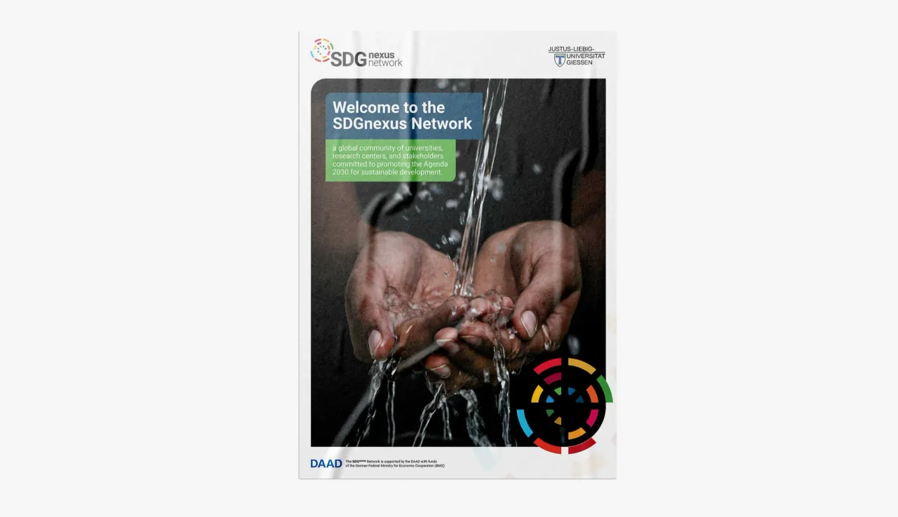 Designing for a network of this scope required navigating two very specific constraints. The brand had to align with the visual language of the UN Sustainable Development Goals — an internationally recognised system of 17 colours that carries enormous symbolic weight — without simply reproducing it. It also had to carry the authority of Justus Liebig University, a serious academic institution with its own established identity.