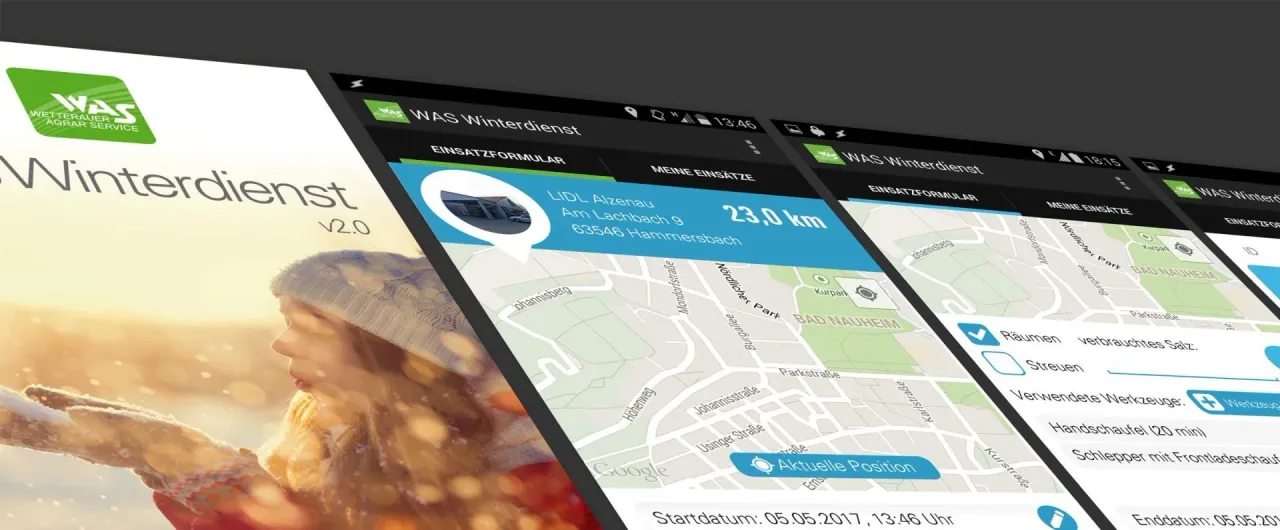 Wetterauer Agrar Service coordinates a fleet of farmers operating tractors with snow ploughs and spreaders across hundreds of commercial and municipal properties in the Rhine-Main region. Before the app, every deployment was documented on paper — handwritten logs, manual timesheets, and phone calls to confirm completion. Billing at the end of the season was a weeks-long administrative nightmare.